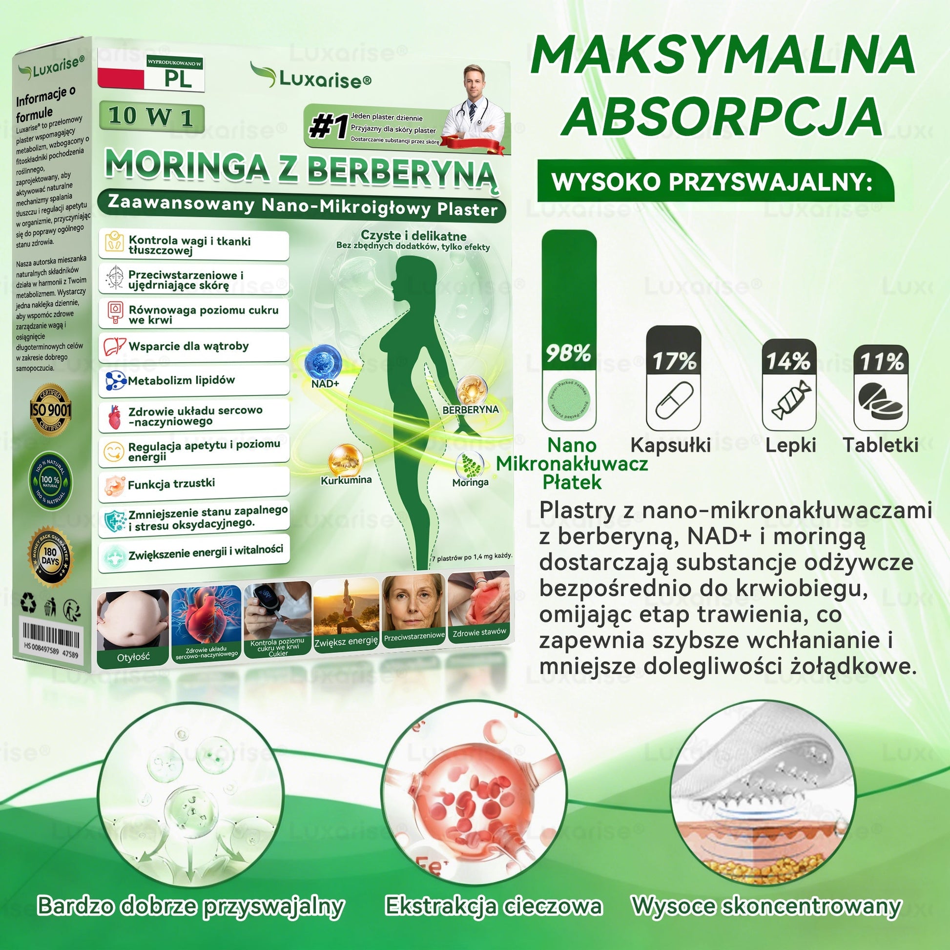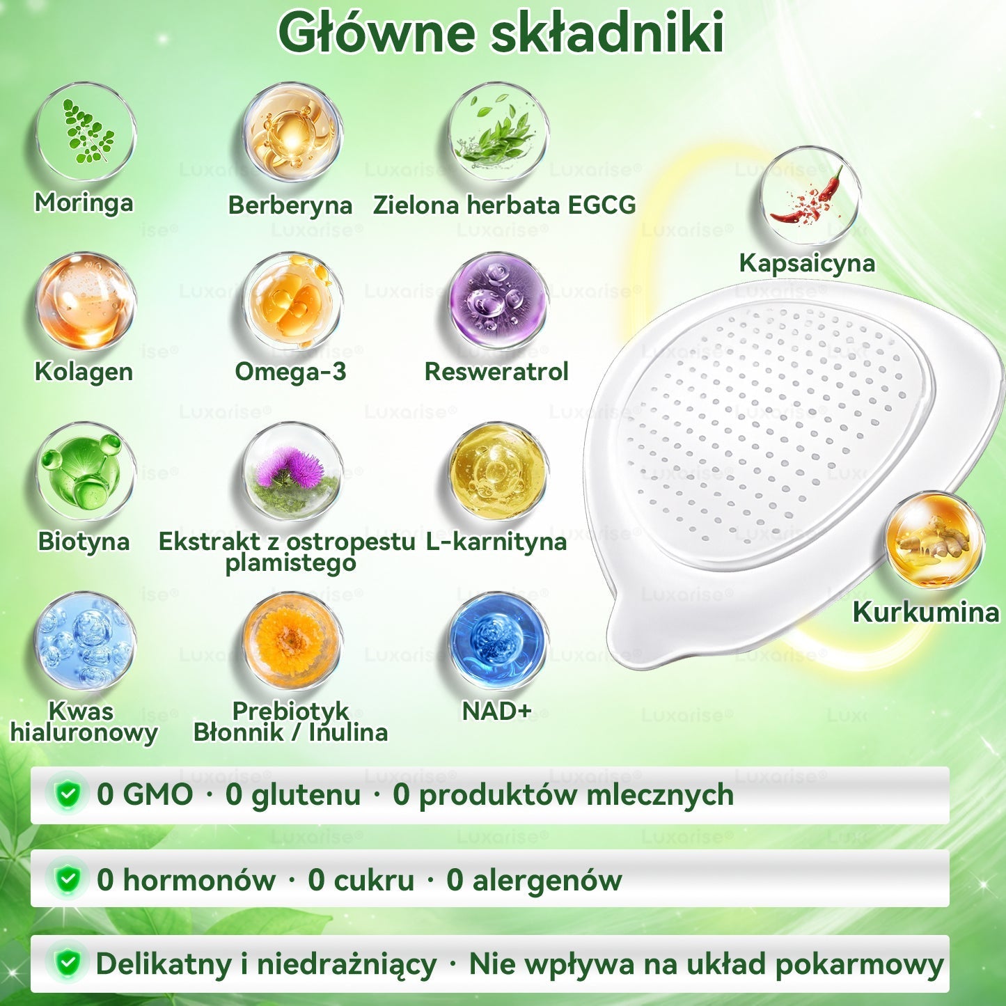 𝐋𝐮𝐱𝐚𝐫𝐢𝐬𝐞®𝐌𝐨𝐫𝐢𝐧𝐠𝐚 𝐳 𝐛𝐞𝐫𝐛𝐞𝐫𝐲𝐧ą 𝟏𝟎 𝐖 𝟏 𝐙𝐚𝐚𝐰𝐚𝐧𝐬𝐨𝐰𝐚𝐧𝐲 𝐍𝐚𝐧𝐨-𝐌𝐢𝐤𝐫𝐨𝐢𝐠ł𝐨𝐰𝐲 𝐏𝐥𝐚𝐬𝐭𝐞𝐫, opracowane przez Ponad 20 lat badań prowadzonych przez ponad 30 ekspertów, produkt został stworzony dla wszystkich dorosłych i każdego typu sylwetki. Łączy w sobie najnowocześniejszą technologię aktywacji i ekstrakcji brunatnej tkanki tłuszczowej z silnie działającymi naturalnymi ekstraktami, aby obudzić ukryty w organizmie „silnik spalania tłuszczu”, zrównoważyć poziom cukru we krwi, ograniczyć apetyt i spalić tłuszcz, zapewniając stopniową i zdrową utratę wagi. Wzbogacony peptydami kolagenowymi, wspiera również jędrność skóry podczas odchudzania, dostarczając jednocześnie wiele wysoce skutecznych składników, które wzmacniają odporność, poprawiają trawienie, wspierają zdrowie jelit i kobiet, dodają energii, redukują zmęczenie i przywracają młodzieńczy wygląd. Wyprodukowany w zakładach posiadających certyfikat GMP, zgodnie ze standardami Polska i UE, zapewnia bezpieczny, potwierdzony naukowo, całkowicie bezbolesny roztwór nanomikroigieł z widoczną, brązową powłoką – obserwuj, jak Twoje własne aktywowane metabolity brunatnej tkanki tłuszczowej są ekstrahowane i ujawniają się w głębokim brązie bezpośrednio na plastrze, zapewniając skuteczną kontrolę wagi i długotrwałe zdrowie.